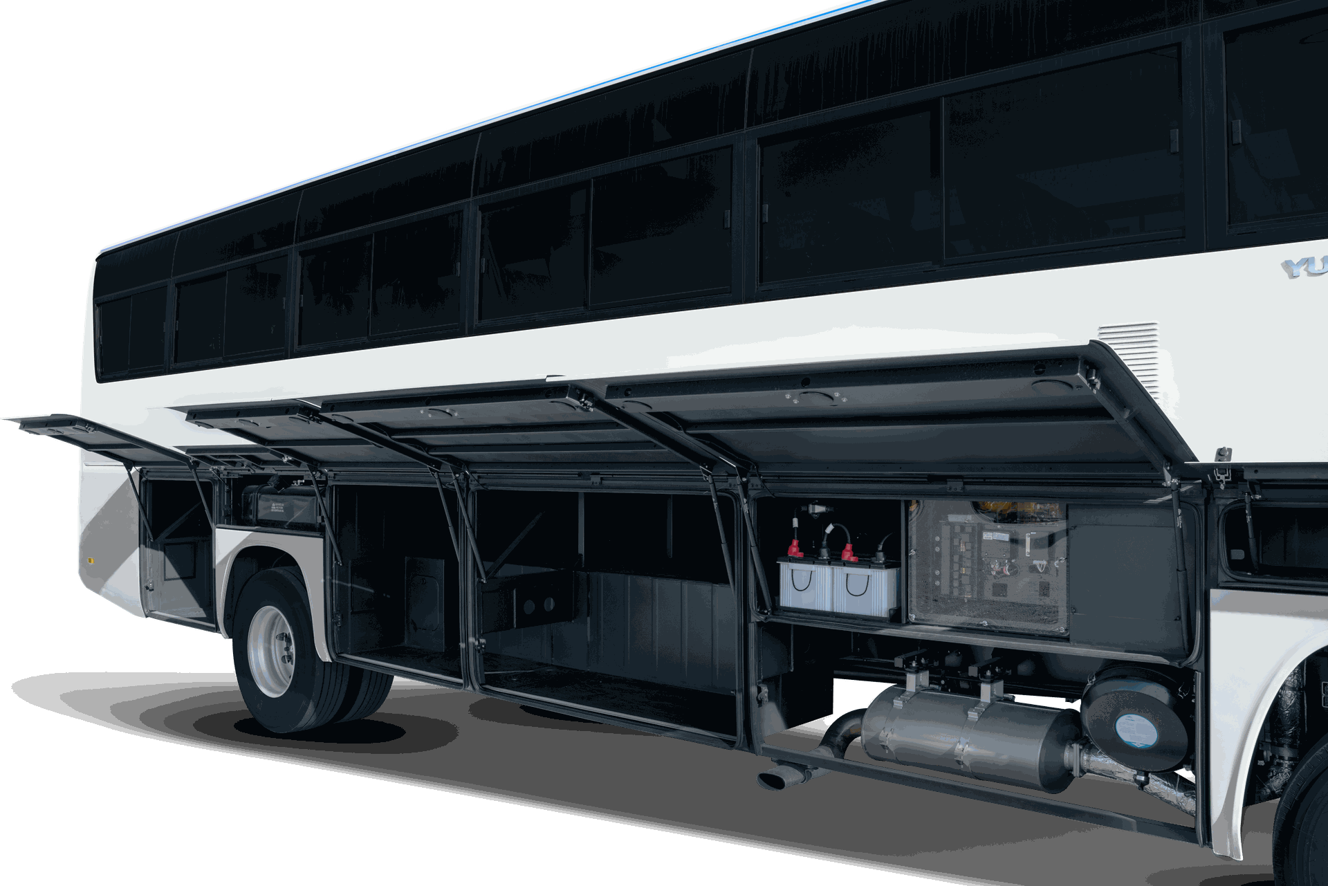 A/C, multimedia Wi-Fi, USB chargers, 2 TV screens, 3 access doors, Automatic fire extinguishers.